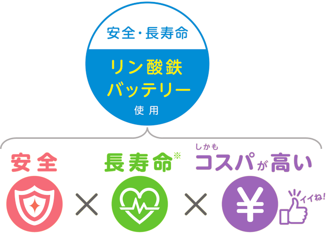 | 電池 | 電池セル:21700/18000mAh(3000mAh × 6)/3.2V / リン酸鉄/57.6Wh |