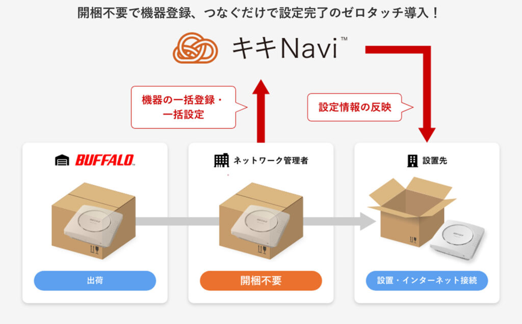 | サポート機能(概略) | 干渉波自動回避機能、リモート管理※、マルチSSID、SNMP、RADIUS認証、VLAN、QoS、Syslog、ゲストポート機能 ※「キキNavi」は無料で利用可能、「WLS-ADT」は別売の管理ソフトが必要です。「キキNavi」と「WLS-ADT」の同時利用はできません。 |